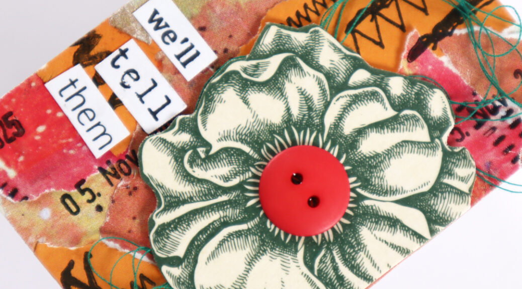 Next I applied some Ocean Gloss Spray by Dina Wakley and decorated the piece with a Rubber Dance flower and stamped words. Stamps are from the Mix It Up 7 and Mix A Sentiment 2023 stamp sets.