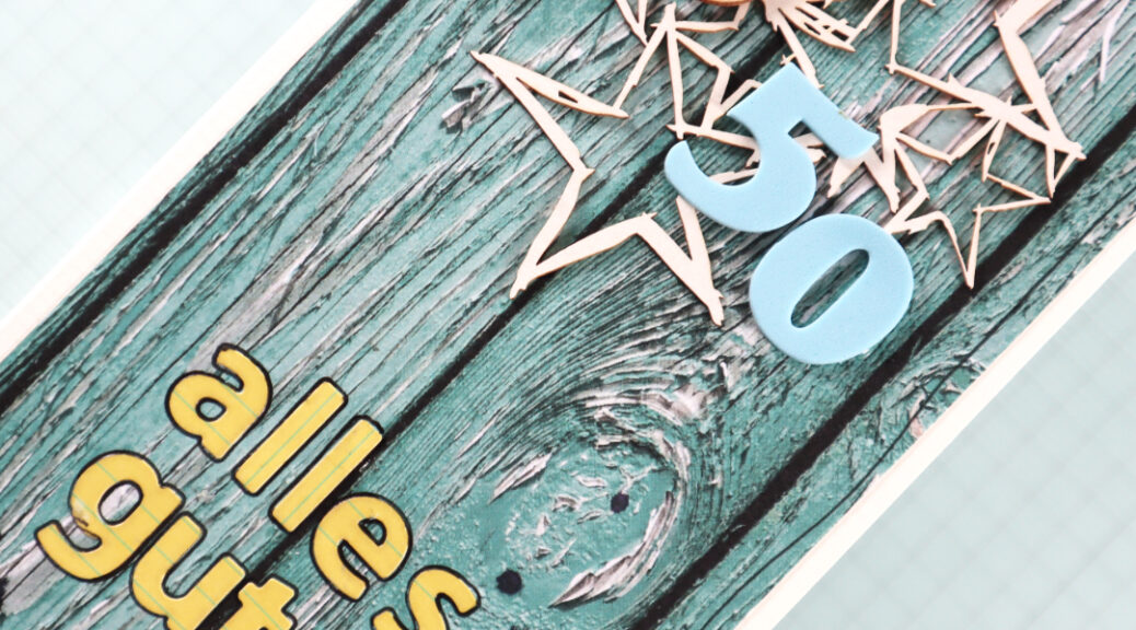 For the above card I´ve used the “Clustered Hearts” die cut die. I´ve saved the smaller hearts and adhered those to the right upper corner of the card. The sentiments is from a clear sticker set called “Shine Bright”. I outlined the hearts to lift them from the background. Also the unicorn has some Stickle details here and there for sparkle.
