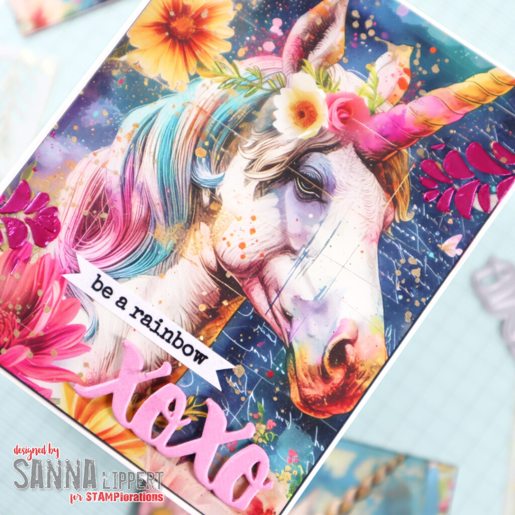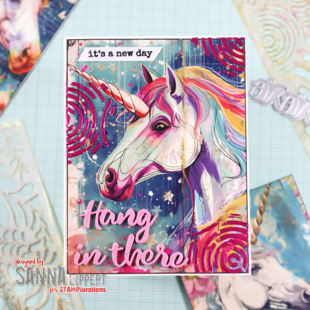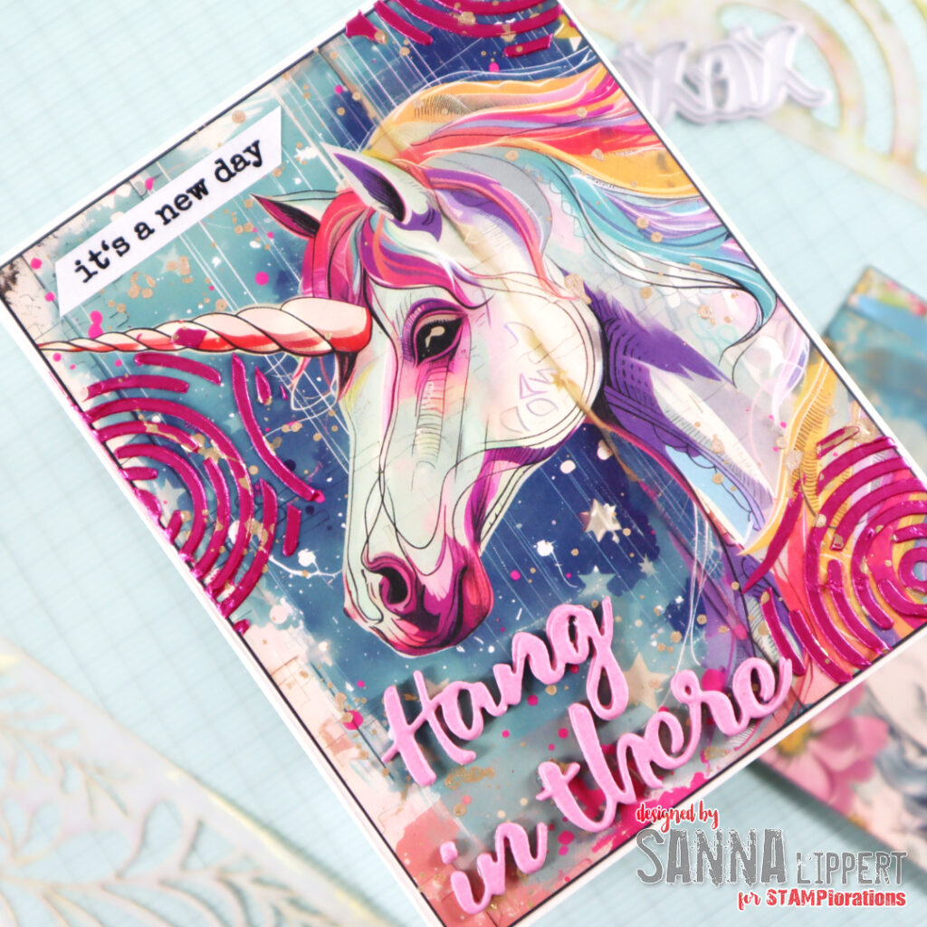 I was lucky to be able to play with the Pop Art Unicorn set and here is what I made so far: