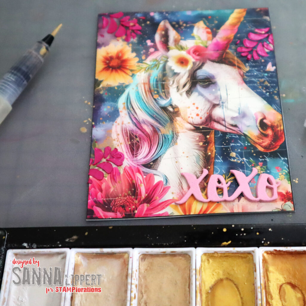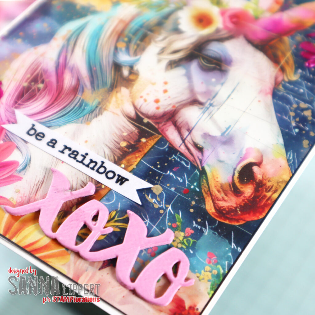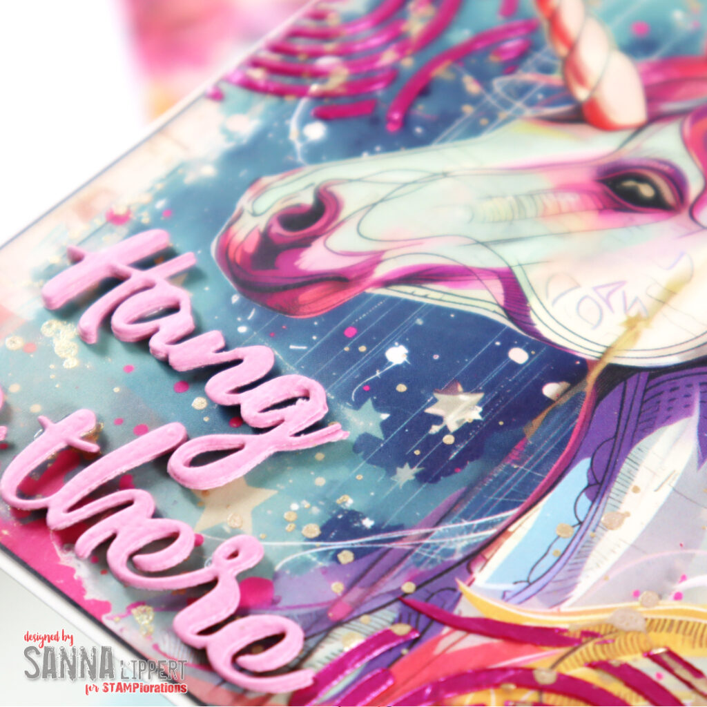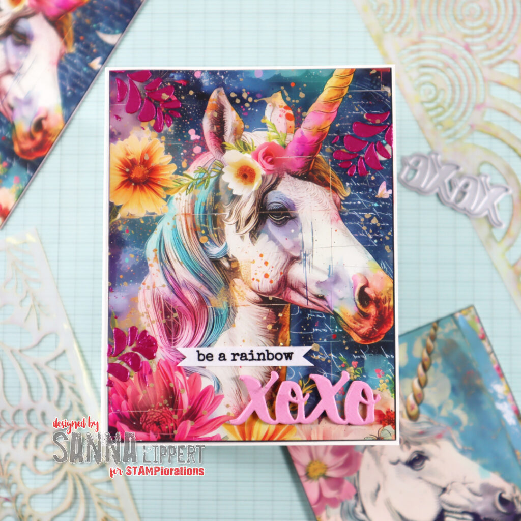 I was lucky to be able to play with the Pop Art Unicorn set and here is what I made so far: