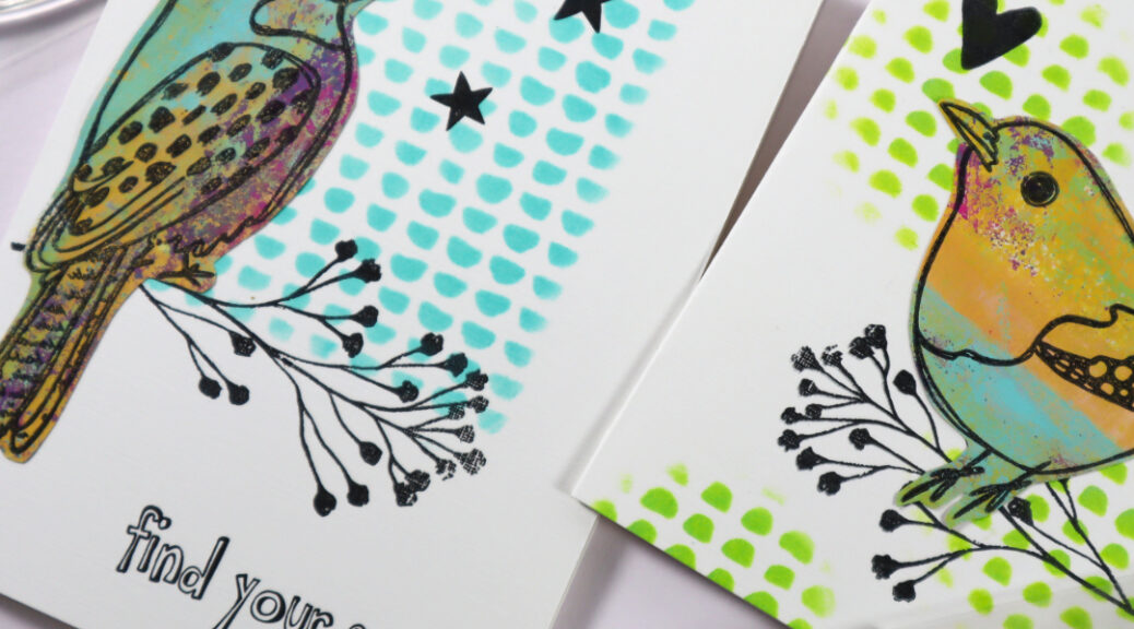 Next I applied some Ocean Gloss Spray by Dina Wakley and decorated the piece with a Rubber Dance flower and stamped words. Stamps are from the Mix It Up 7 and Mix A Sentiment 2023 stamp sets.
